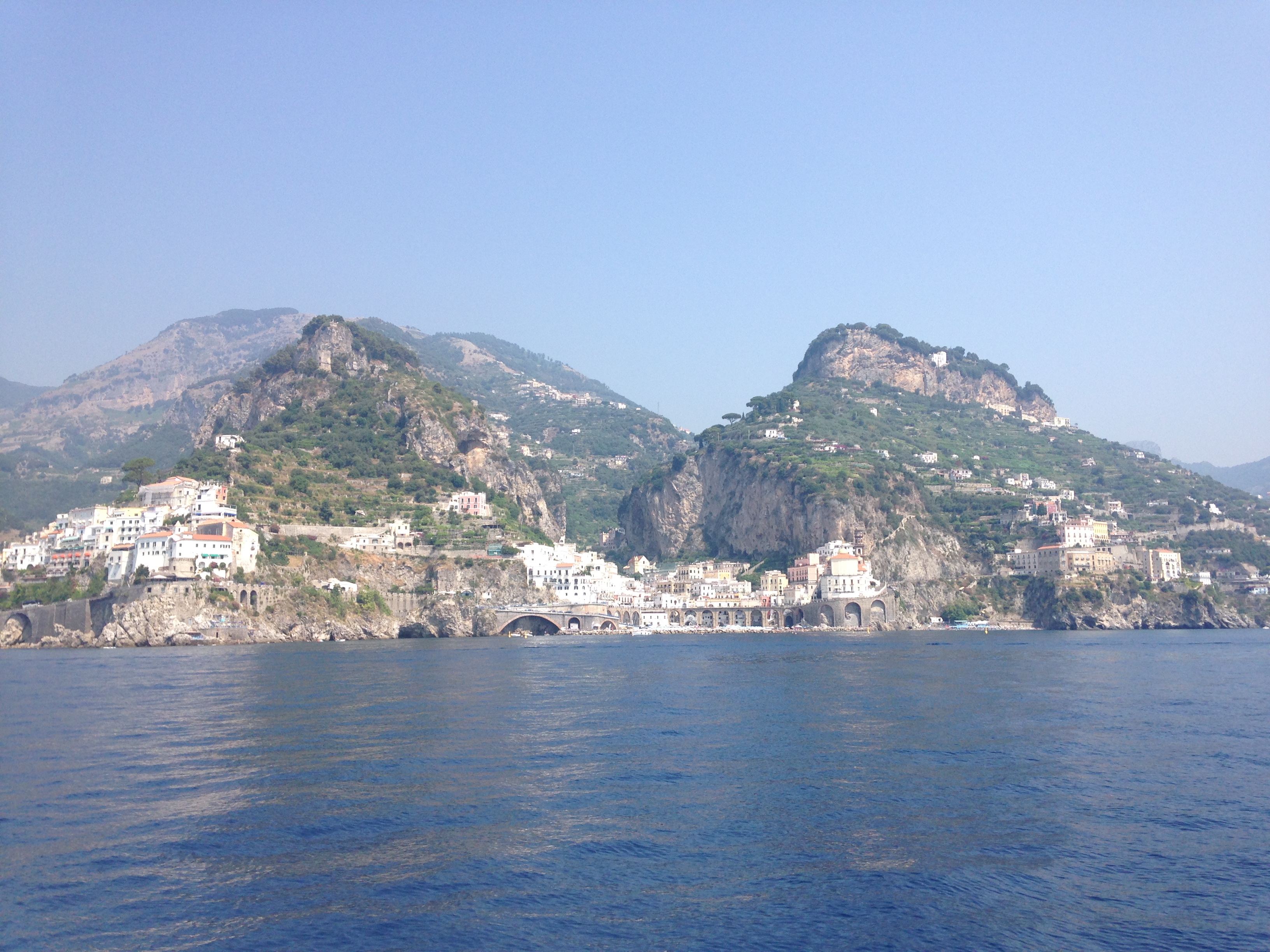 Once I arrived and got mouthfuls of water into me (from a fountain depicting a topless woman — you can guess where the water came from ) and I sat and enjoyed a beer and pizza, I had revived enough to concede the trip was well worth it. The town of Amalfi was beautiful and the view of the coast line staggering.