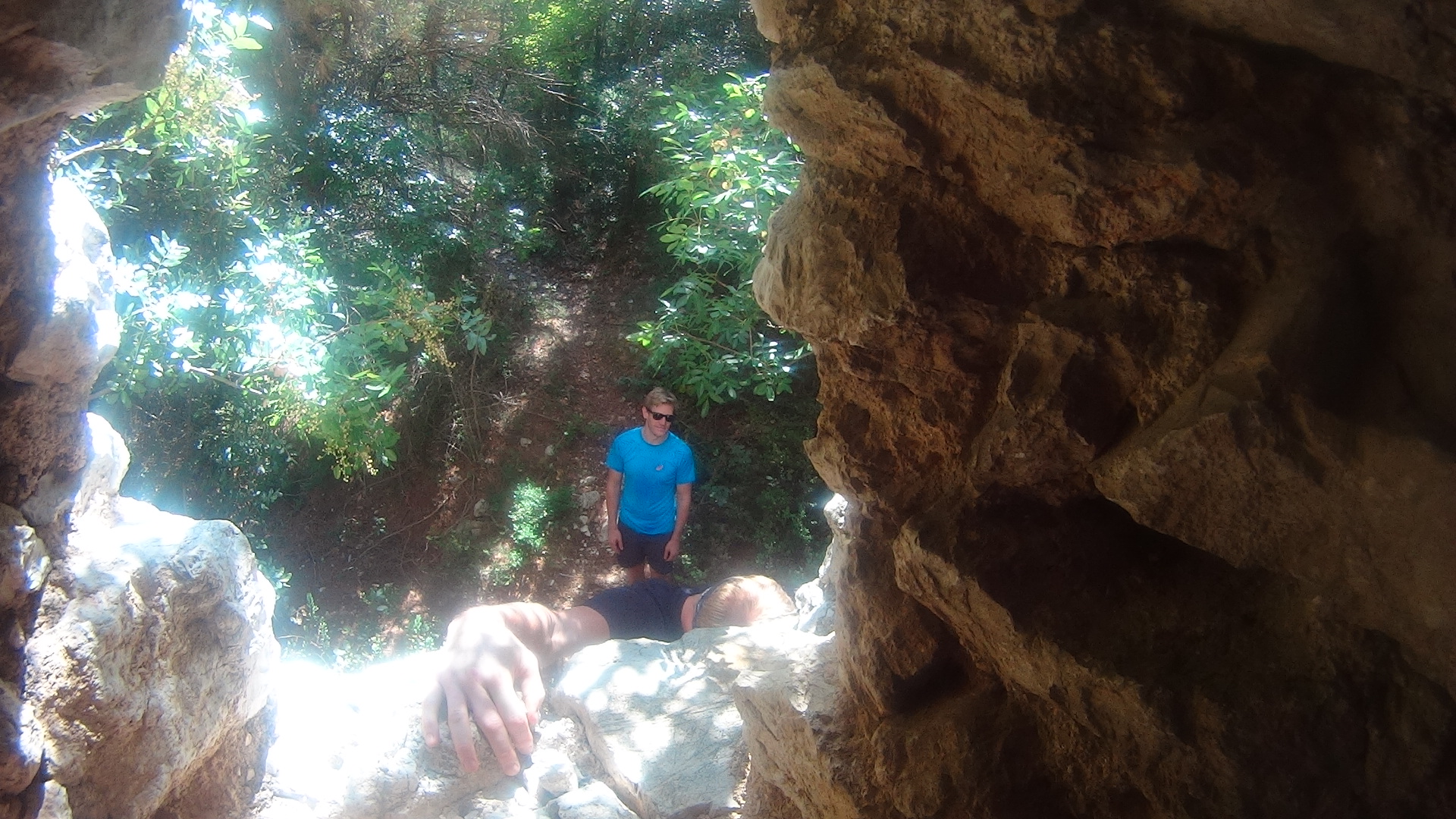 We retreated back to our section of wall amongst the scrub and, like the true explorers we are, scaled the wall to a small window up the side of the stones. Crawling through the narrow opening, I almost wedged my shoulders in the tiny gap, but after some contorting, crawled out on my hands and knees into the tree-clogged interior of the fort. We were standing on an inner ledge, twenty metres up from the fort’s floor. The roots of the trees around us were probably the only reason the outcropping could take our weight. The sheer drop stopped us from venturing any further, but it was still fascinating to study the vine-scrawled walls stretching away to either side.