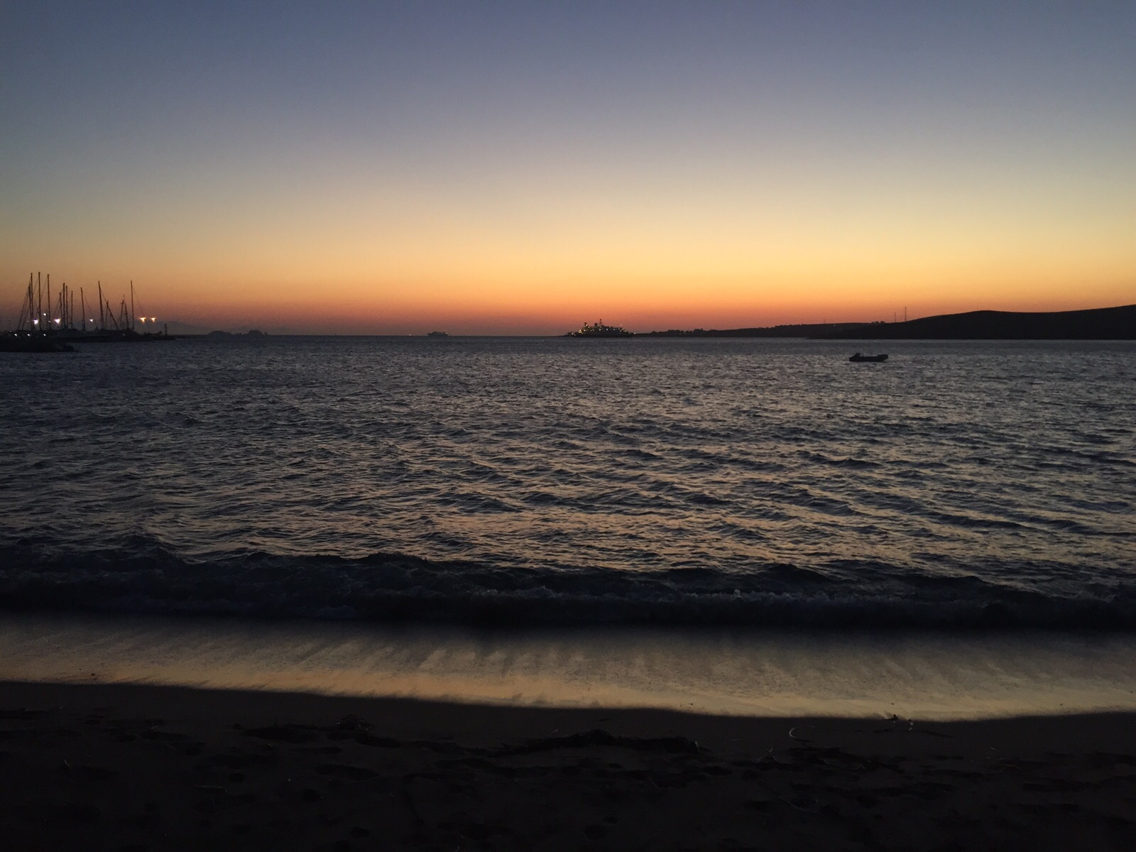 From Vienna, we flew to Athens then took a bus (the third form of transport for those still counting) to the docks, where we boarded a huge ferry for the five-hour trip out to the island of Paros. The water opened up to swallow us as we drifted away from the newly discovered city of Athens (new for me, at any rate. I hear it’s actually quite old), and on to paradise. The sun set while we sailed and we were greeted by the lights of Paros sparkling along the shoreline, dimly illuminating the square white buildings Greece is renowned for. The departure from the boat was impressive, hundred of people, suitcase wheeling behind them, disgorging from the bowels of the ferry, a mass of humanity spreading out into the island. It felt like we were all new migrants, deposited on an island, to start a new life. If this is my new life, then I have nothing to complain about.