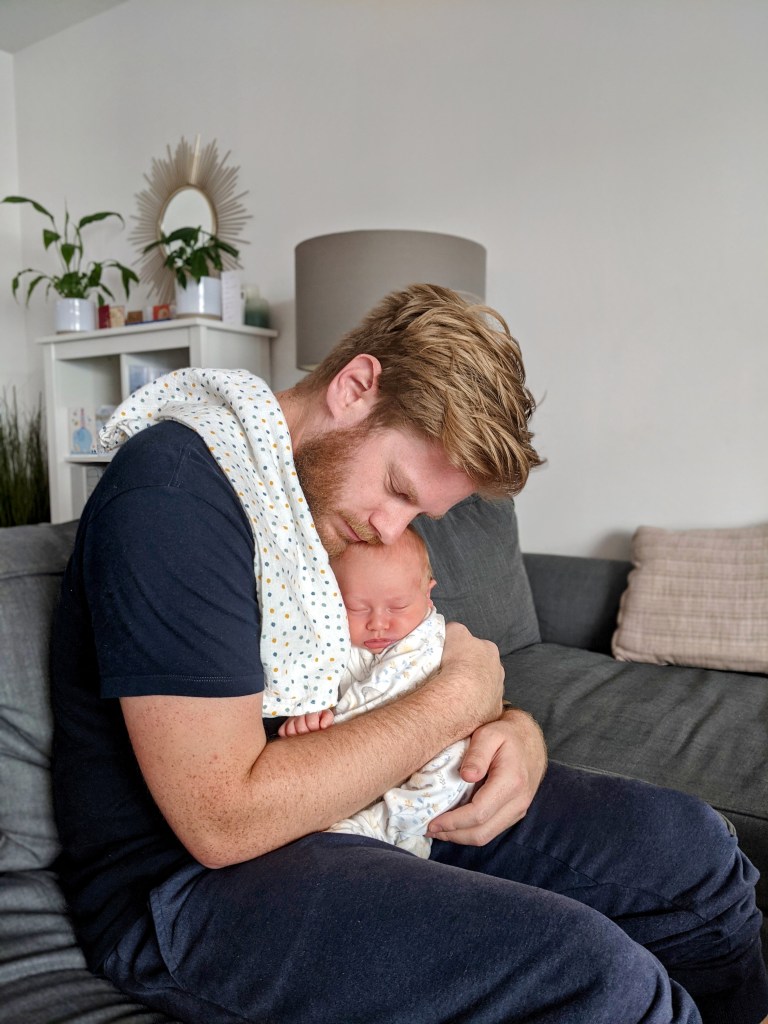 I bring out a bluetooth speaker and we listen to George Ezra strum his brand of upbeat pop, Alex soaking in the bath and me on the floor, one hand dangling in the water, waiting for our baby to arrive.